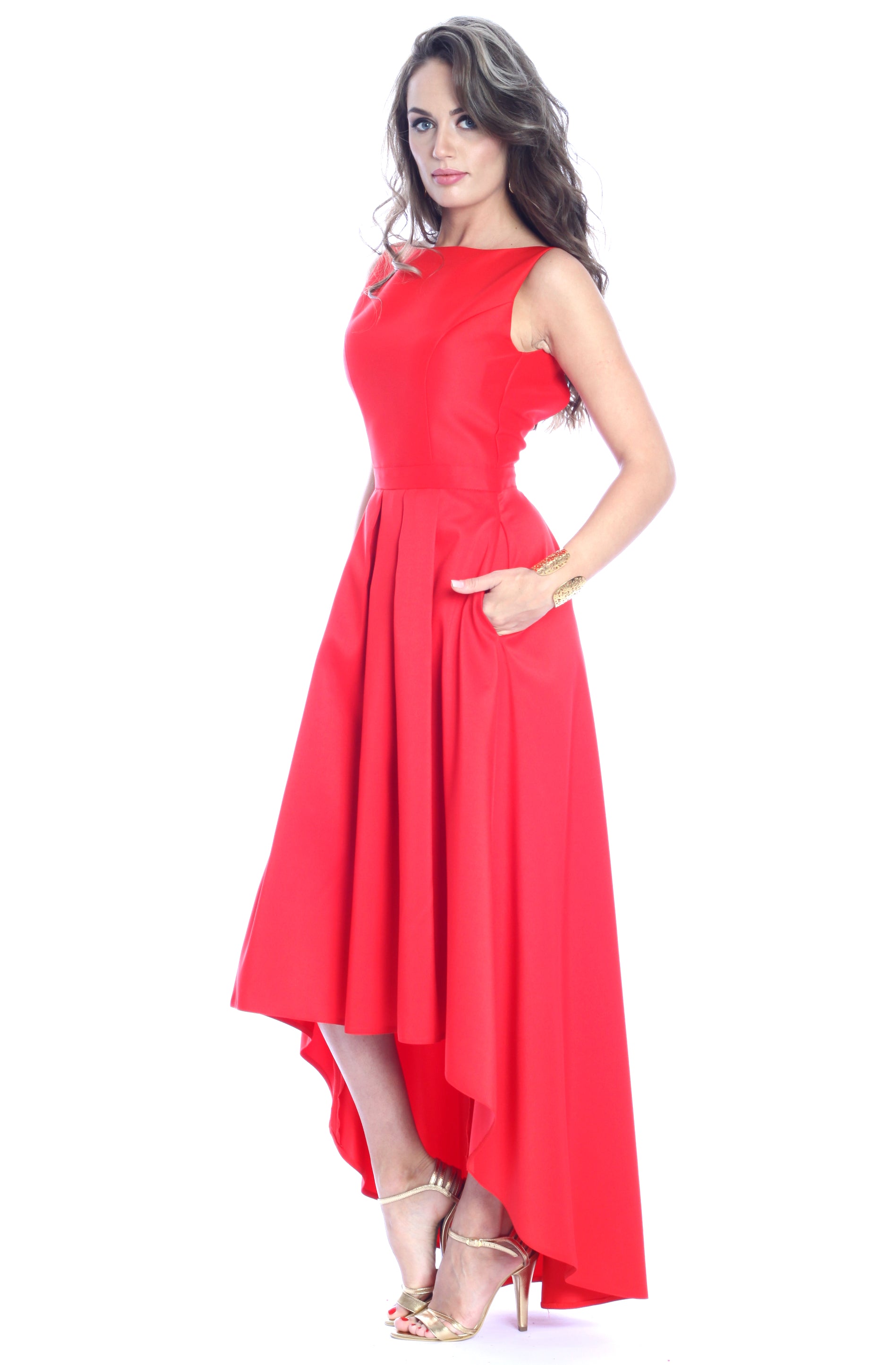 Rochie asimetrica rosie fara maneci cu buzunare New York