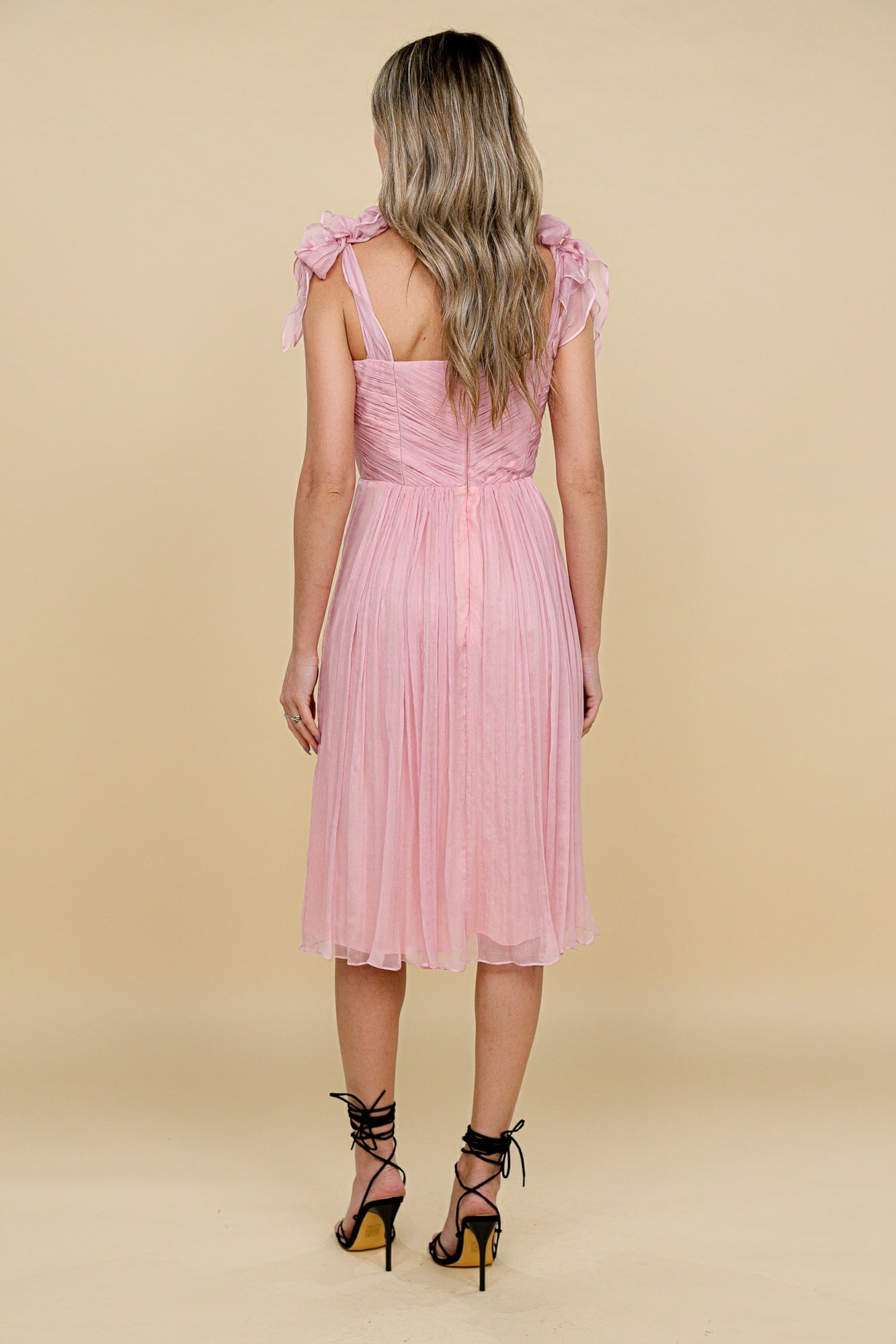 Rochie cu bust coreset midi roz din matase