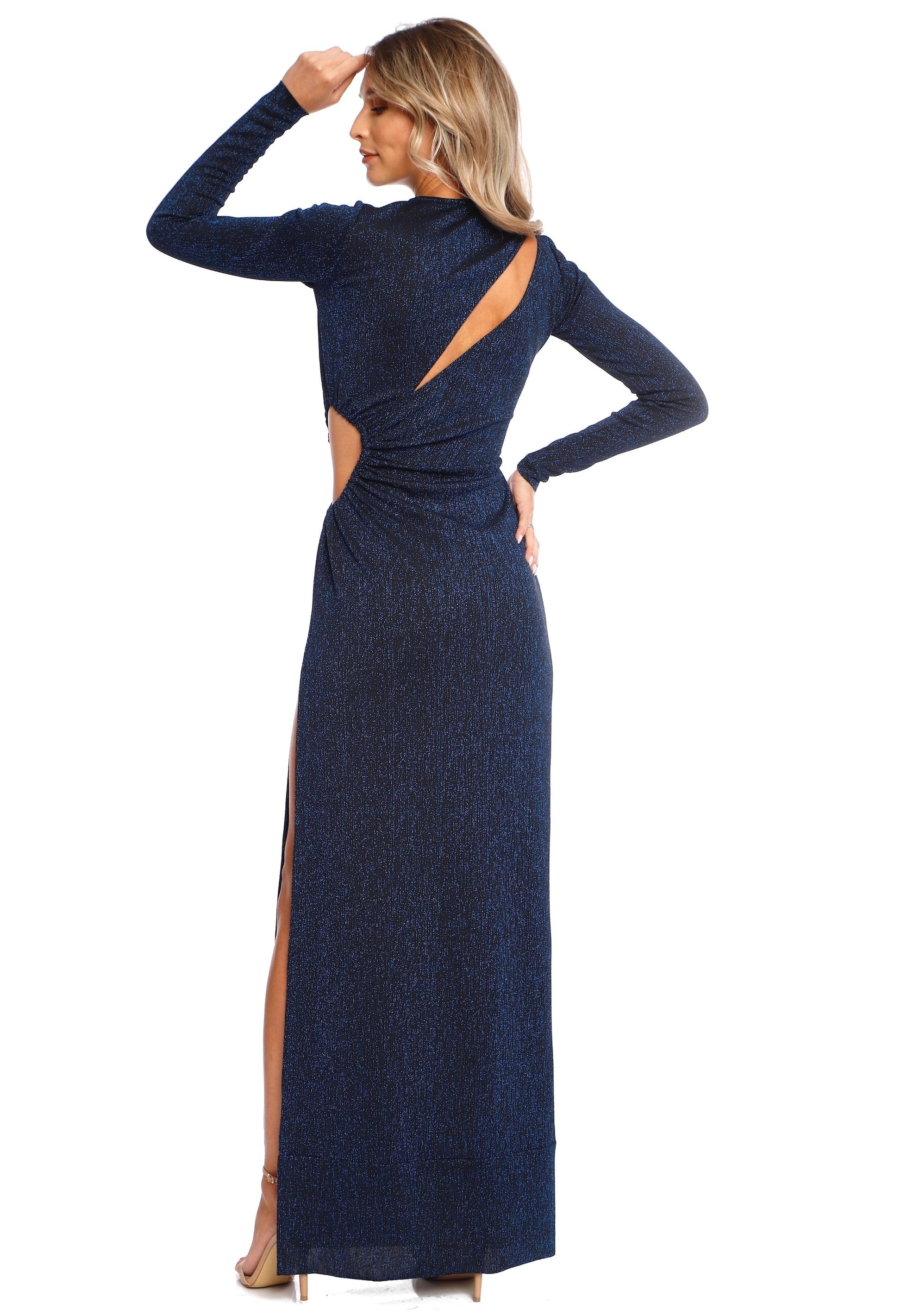 Rochie lunga bleumarin din jerseu cu sclipici si decupaje Mykonos