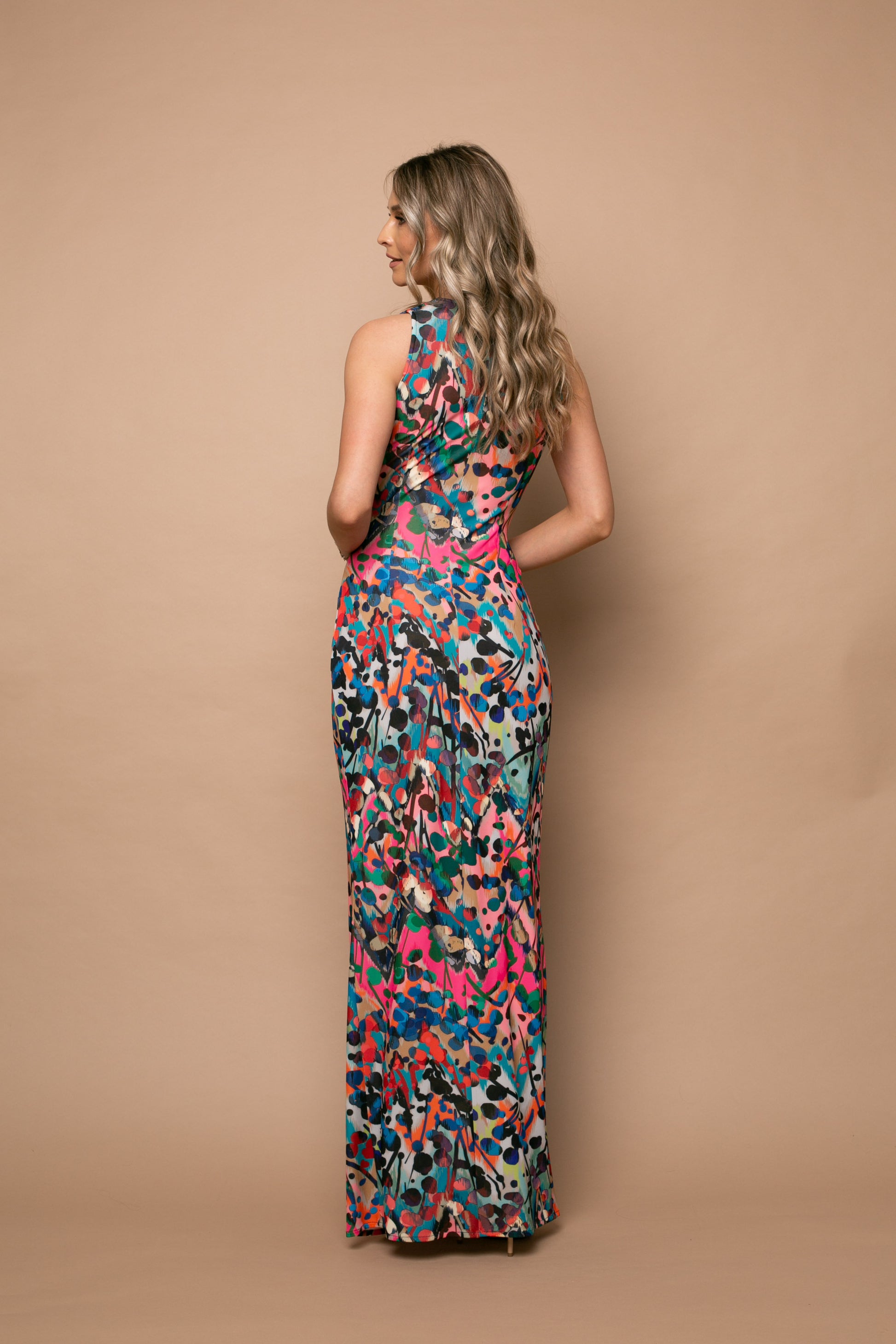 Rochie maxi fara maneci din jerseu Mallorca cu print Barcelona