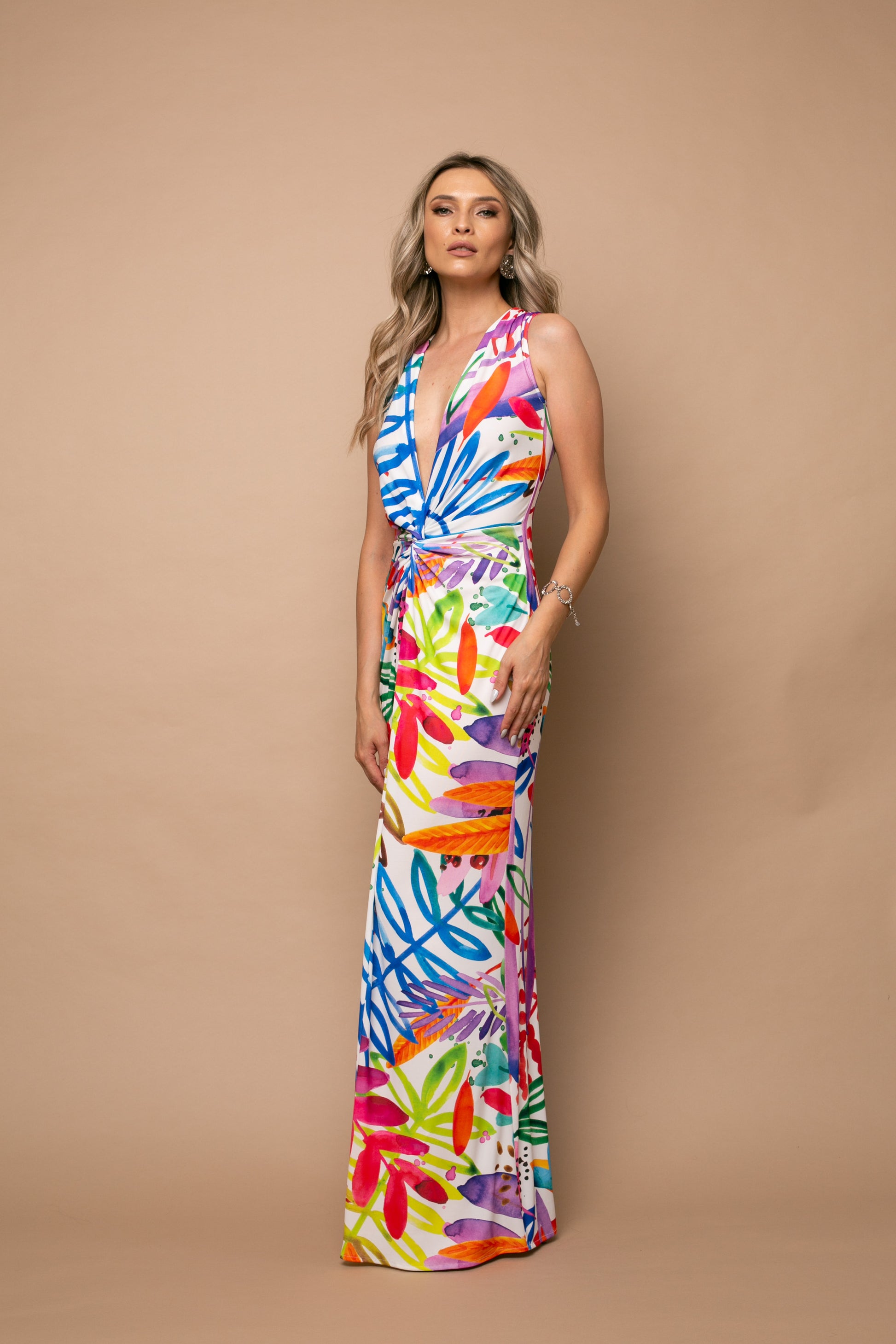 Rochie maxi fara maneci din jerseu Mallorca cu print Capri