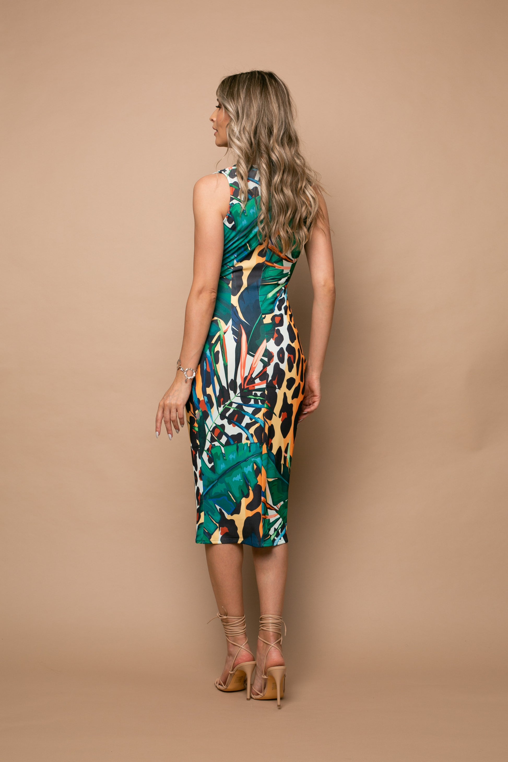 Rochie midi fara maneci Mallorca cu imprimeu Amazon
